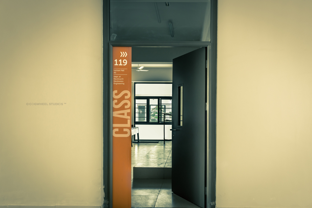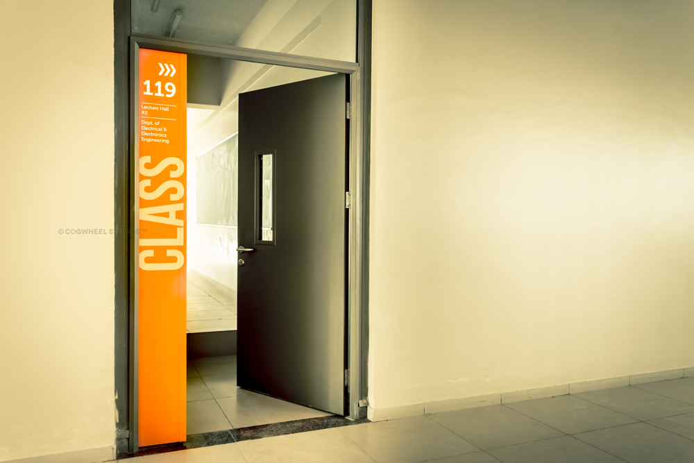 With the opening of their new state of the art 3,00,000 sqft engineering block on their 23-acre campus, the governing council of the academic institute consulted Cogwheel Studios with an objective to amplify the overall visual aesthetics of the interior space and to develop suitable area signage systems. Upon meticulously understanding of the project demand, we further helped the project stakeholders in understanding the importance of a strategic wayfinding intervention prior to developing the creatives, that can enable a user to travel from a given point A to point B in minimal time and assistance.
